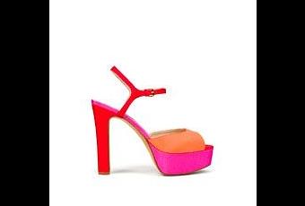 Para empezar, algunos modelos de la Colección de Zara, en este caso una sandalia tricolor, con una combinación de colores de lo más actual, nada más y nada menos que naranja, rosa y rojo, acompańado de taconazo y cuńa, y otra similar en un precioso tono amarillo.