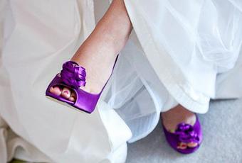 Vale, nuestra entrada de hoy es de zapatos de color que pueden ser utilizados tanto por novias como por invitadas, pero queremos mostrar nuestra admiración por novias atrevidas que pasan del blanco clásico y se lanzan a propuestas de colores nada convencionales. Por ello hoy os dejamos una selección de zapatos en tonos morados, así como imágenes de novias que ya se han atrevido con ellos… ¡Esperamos que os gusten!