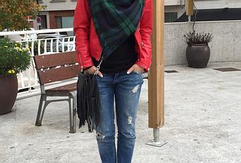 Cazadora: Romwe || Jeans: Zara || Bolso: Tasmania || Collar: Aloumiño || Bufanda: SandyCoast Shop || Zapatos: Bershka