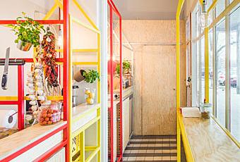 El resultado es un negocio sencillo, dinámico, alegre y abierto. El cliente sigue una ruta hasta llegar al final donde puede degustar su comida. Aquí no hay secretos, todo está a la vista, teniendo la ventaja de poder ver cómo se elabora la comida.