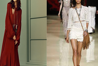 Zara destaca por sus maxi vestidos de gasa en colores tierra y verdeagua y piezas muy muy años 70 con pantalones de campana y piezas florales de estilo boho, sandalias de gladiador y mucho ante y denim, parecen sacadas del mismo Woodstock!
