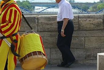 Esta foto la tomé de viaje en Zaragoza. Estabamos cruzando el Puente de Piedra y tomando fotos del Pilar desde allí cuando vimos que se acercaba un grupo de personas disfrazadas para la Feria Medieval que tenia lugar justo ese fin de semana. Al darme vuelta ví estos dos hombres juntos y sin pensarlo hice click!El puente viejo ,y el nuevo detras, el hombre de mediana edad y el anciano, el hombre medieval y el hombre actual, todo eso me hizo pensar en el paso del tiempo...