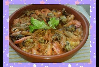 Como no para año nuevo, vida nueva una buena zarzuela de pescado receta de mi madre deliciosa. INGREDIENTES: Una cola de rape grandecita cortada a rodajas (dependiendo la cantidad de comensales) Una merluza cortadita a rodajas (dependiendo la cantidad de comensales) Cinco rodajas de emperador Una sepia grandecita Anillas de calamar Escamarlanes Gambas Galeras Langostinos Almejas Una cebolla bien picadita http://www.vivelafruta.com/specials.php Tomates rallados http://www.vivelafruta.com/specials.php Un sobre de fumet de marisco de Martin Berasategui http://www.maheso.com/ Aceite de oliva y sal Huevos para rebozar el pescado Harina para rebozar Vino blanco Una picada Ajo y perejil picadito http://www.vivelafruta.com/specials.php ELABORACION El primer paso será poner en una sartén abundante aceite, para ir friendo todo el pescado pasaremos el rape, la merluza, emperador, anillas de calamar, trocitos de sepia por huevo y harina y lo freiremos todo, lo iremos reservando en una cazuela de barro bien colocadito para que a la hora de servir no se nos rompa. En el mismo aceite freiremos los langostinos, gambas, escamarlanes, galeras y lo reservaremos en la cazuela de barro, en el mismo aceite aremos el sofrito con la cebolla y el tomate y lo añadiremos a la cazuela de barro añadiremos el vino un vaso de agua el fumet y la pon dejaremos a fuego medio cuando valla haciendo el chup, chup añadiremos las almejas la picada y el ajo y perejil picadito dejaremos unos diez minutos que cueza y listo. Para servir