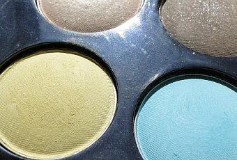 El cuarteto de sombras, llamado Awakening, tiene unos tonos que se ven más vibrantes en la paleta que en la piel. Hay un celeste, un marrón con shimmer lila, un verde lima (o amarillo verdoso) y un color nude. Tres de los cuatro colores pigmentan bien y son un poco atalcados, pero el cuarto, un nude, no logré siquiera que pigmentara mi dedo para pintar el brazo. No sé si estaba fallado o no, pero apenas dejó un brillo insignificante en mi brazo.