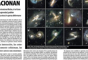 Recorte de las páginas 8 y 9 del suplemento El Zoco del periódico Diario Córdoba publicado el domingo 8 de noviembre de 2009. La imagen es una composición de 12 imágenes mostrando varias galaxias en interacción observadas con el Telescopio Espacial Hubble. Crédito de la imagen: NASA, ESA, Hubble Heritage (STScI/AURA)-ESA/Hubble Collaboration and A. Evans (Univ. of Virginia, NRAO, Stony Brook University).