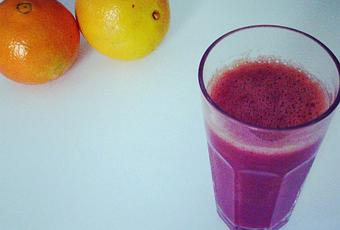 - Introducir en el vaso de la Thermomix la remolacha, las naranjas, el limón, el azúcar y el hielo.Triturar primero con 3 golpes de turbo y seguidamente programar 3 minutos a velocidad 10