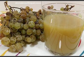 Usamos un colador o el propio cestillo de la thermomix para colar el zumo dejando todas las pieles y pepitas en el interior del vaso.PREPARACIÓN (Clásica):Lavamos muy bien las uvas y las ponemos un bol o en un vaso batidor. Añadimos el limón pelado, sin pepitas ni la parte blanca. Si vamos a usar un poco de azúcar también lo añadimos ahora.Batimos bien. Podemos usar una batidora clásica o un vaso batidor. Os recomiendo éste último porque ensuciaremos menos. El tiempo es orientativo pero la uva tiene que quedar echa zumo.Añadimos el agua y volvemos a mezclar.¤¤¤¤¤¤El resultado es un zumo con un sabor muy intenso. Yo procuro que la uva esté previamente en el frigorífico y de esta manera se puede tomar el zumo directamente.