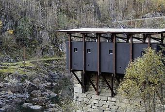 Los 4 volúmenes que forman parte del conjunto museográfico de la mina de zinc respetan cabalmente estos cánones. Cada objeto parece levitar sobre la ladera, siguiendo la estrategia de recorrido que propone el plan del sitio. De esta forma, Zumthor evita un excesivo peso visual sobre el paisaje, pero además revaloriza los depósitos arqueológicos de la mina de Almannajuvet como el verdadero museo.